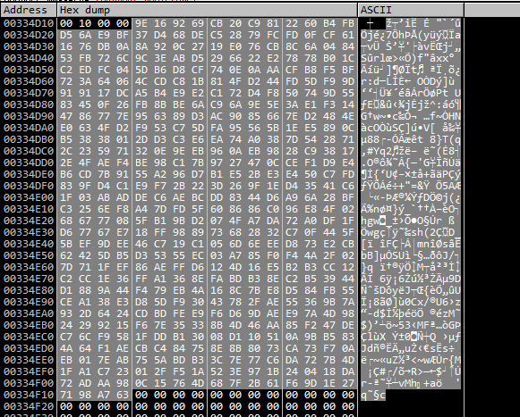 └ 암호화 키 : 내부 알고리즘에 의해 랜덤하게 생성된 256 비트 키와 128비트 IV
