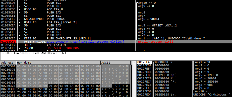 2.1 트릭 폴더 생성 후 NtFsControlFile API 사용하여 마운트 지점(c:\Windows \") 설정