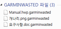 └ 암호화된 파일명 : [파일 이름].garminwasted (*garmin : 공격 대상 조직명 / wasted : 랜섬웨어 이름)