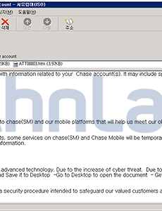 스팸메일32 [주의] 오토캐드(AutoCAD) 설계도면 파일(dwg)로 위장하여 악성코드 유포 최근 들어 오토캐드(AutoCAD) 도면 파일(dwg)로 위장한 악성코드가 유포되고 있다. 해당 파일명은 imageXXX_M-003 장비일람표.dwg.exe 형식을 가지며 주로 스팸 메일을 통해 유포되고 있는 것으로 추정된다. 위와 같이 유포된 파일은 VB(VisualBasic) 아이콘을 사용하며 윈도우 폴더 기본 옵션인 확장명 숨기기 기능을 해제 할 경우 다음과 같은 dwg 파일명 뒤에 .exe 확장자가 추가적으로 붙은 것을 알 수 있다. 실제 해당 악성 파일은 Visual Basic 언어로 만들어진 exe 실행 파일이다. 주로 스팸 메일 등으로 유포되는 국내외 Visual Basic 악성코드는 일반적으로 상용 빌더(Builder) 또는 커스텀 패커를 이용하여 만들어지기 때문에 파일의 코드 외형 특징과.. 2020. 2. 27. 국내 기업을 사칭하여 이메일로 유포되는 Visual Basic 악성코드 최근 들어 국내 기업을 사칭한 이메일로 유포되는 악성코드가 증가하고 있다. 메일 내용은 수신인을 고려하여 절묘하게 작성되어 있어서, 공격 대상의 악성코드 실행 가능성을 높였다. 이메일은 lzh, r22 등의 압축 파일 포맷으로 된 첨부 파일로 포함하고 있다. 기존에 zip, egg 등의 좀 더 일반적인 파일 포맷을 이용한 것과는 비교되는 특징이다. 압축 파일 내부에는 악성 exe 실행 파일이 있고, 공격 대상이 이를 실행할 경우 악성 기능이 실행된다. 아래는 2월 10일 유포되었던 이메일이다. exe 실행 파일은 Visual Basic으로 만들어져 있다. 스팸 메일 등으로 유포되는 국내외 Visual Basic 악성코드는 일반적으로 빌더(Builder)를 이용하여 만들어지기 때문에 파일의 코드 외형 특징.. 2020. 2. 11. 송장 메일로 유포되는 엑셀 문서 주의 (2) 10월 22일 오전 국내 기업을 대상으로 다운로더 악성코드를 유포하는 스팸 메일이 유포되고 있어 사용자의 주의가 필요하다. 엑셀 파일에서 드롭되는 최종 DLL은 10월 17, 18일인 지난 주 목요일부터 금요일까지 유포된 형태와 동일하다. 2019.10.18 ‘급여명세서’ 메일로 유포되는 엑셀 문서 주의 https://asec.ahnlab.com/1254 ‘급여명세서’ 메일로 유포되는 엑셀 문서 주의 10월 17일 부터 국내 기업을 대상으로 다운로더 악성코드를 유포하는 스팸 메일이 다수 유포되고 있어 사용자의 주의가 필요하다. 현재 확인된 국내 기업을 대상으로 유포되고 있는 스팸 메일 제목은 “10월.. asec.ahnlab.com 이전 블로그에서 설명한 방식과의 차이점은, 현재 국내 기업을 대상으로 유.. 2019. 10. 22. 과속 범칙금 메일로 위장한 악성코드 유포 최근 과속 범칙금 메일을 위장하여 유포되는 악성코드가 발견되었다. 국내 거주하는 사용자들에게는 위험성이 다소 낮지만 유포되는 악성코드가 최근 해외 금융 사 등의 메일로 배포되는 악성코드와 유사한 악성코드로 사용자들의 주의가 요구된다. 본문 내용은 다음과 같다. [그림 1] 과속 범칙금 메일로 위장한 메일 본문 위의 내용을 보면 메일에 첨부된 파일을 실행하도록 유도하는 내용을 확인할 수 있으며, 메일에 첨부된 파일은 아래와 같다. [그림 2] 첨부된 악성코드 해당 파일을 실행하면 아래와 같은 자신의 파일을 복제하여 방화벽을 우회하고, 자동으로 실행 될 수 있도록 레지스트리에 특정 값을 등록한다. 특히, 자신의 파일을 복제할 때는 5자리 임의의 폴더 및 파일 이름으로 복제하며 악성코드 감염 시, 생성되는 배.. 2013. 6. 11. 금융사 정보로 위장한 스팸메일 금융사 계정 정보로 위장하여 악성코드를 유포하는 스팸메일이 확산되어 사용자들의 주의가 필요하다. 이 스팸메일은 아래와 같이 chase사의 사용자 계정 정보와 관련된 내용이지만 Zbot 악성코드가 압축 파일의 형태로 첨부되어 있다. [그림 1] 금융사 정보로 위장한 스팸메일 압축 해제된 파일을 실행하면 C:\Documents and Settings\ahnmaru78\Application Data 폴더에 랜덤한 폴더를 생성한 후 자신을 복사한 후 실행하여 감염시킨다. 또한, 복사한 파일이 부팅 시 실행되도록 레지스트리의 아래 경로에 자신을 등록한다. HKCU\Software\Microsoft\Windows\CurrentVersion\Run\{E55555F5-9C43-AD7D-DE5D-26A4FBAA05B6}.. 2013. 6. 10. Bank of America로 위장한 스팸메일 최근 Bank of America에서 보낸 것으로 위장하여 악성코드를 배포하는 스팸 메일이 발견 되어 사용자들의 주의가 요구된다. 이번에 발견 된 스팸메일은 "You transaction is completed" (당신의 계좌 이체는 성공하였습니다.)라는 제목을 사용하였으며, 본문 내용은 다음과 같다. [그림 1] Bank of America로 위장한 스팸메일 본문 해당 스팸 메일은 "Receipt of payment is attached." (영수증은 첨부해드립니다.)라는 표현을 쓰면서 첨부 된 파일의 실행을 유도한다. 첨부 파일은 zip 파일로 되어 있으며, 내부에는 실행 파일 형태로 악성코드가 존재하기 때문에 주의가 필요하다. 또한 "This is an automatically generated e.. 2013. 6. 4. UPS 화물 운송장으로 위장한 스팸메일 UPS에서 발송한 화물 배송조회 메일로 위장한 악성 스팸 메일이 발견되었다. 이 메일은 발신자 주소를 임의의 메일 계정으로 하여, 악성 html 파일을 첨부한 상태로 불특정 다수에게 배포한 것으로 보인다. [그림 1] 스팸 메일에 첨부 된 html 파일 html 파일의 링크를 클릭하면 실제 악성코드를 유