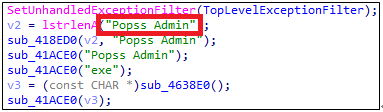Downloader 악성코드 외에 백도어 악성코드도 차이점이 존재한다. 아래와 같이 “Ammyy Admin”이라는 문자열을 고치지 않고 그대로 사용했던 것과 달리 이번 FlawedAmmyy 악성코드는 “Popss Admin”이라는 이름으로 수정하였다.