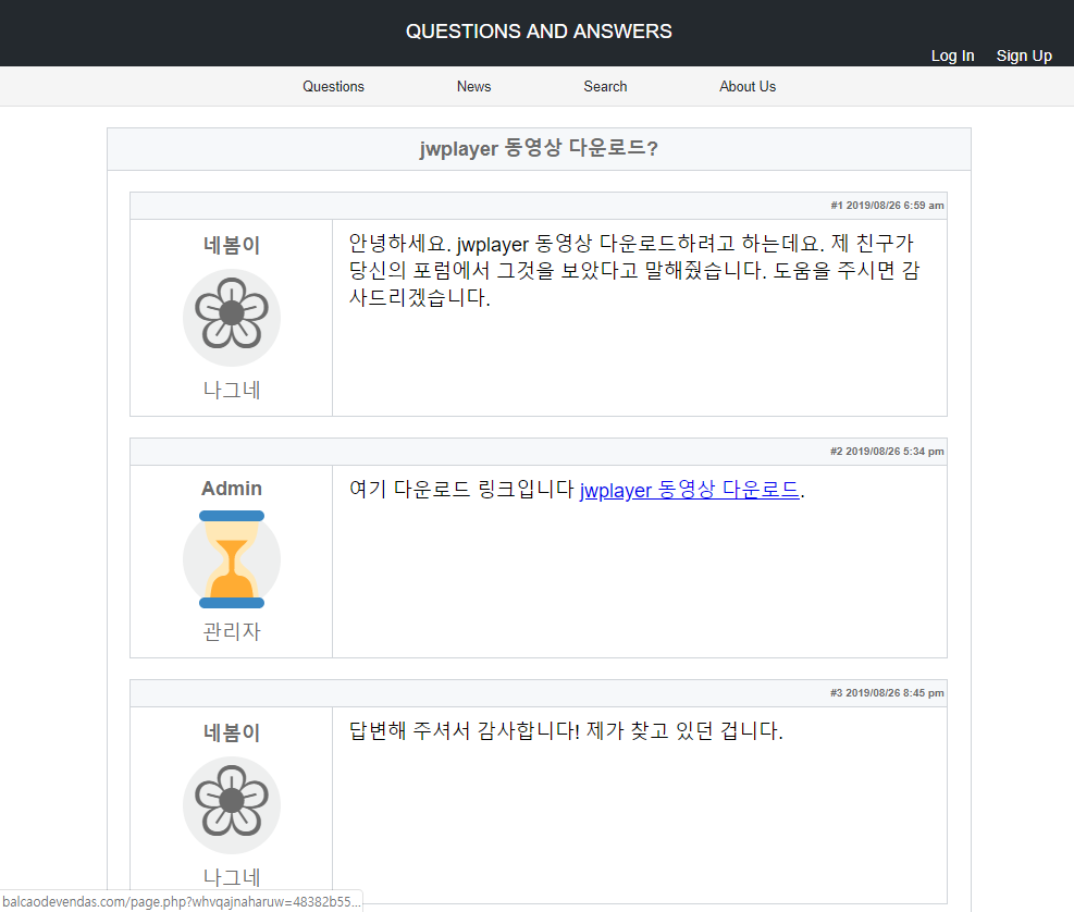 안랩 ASEC 분석팀은 피싱 다운로드 페이지로 유포되는 자바스크립트 형태의 BlueCrab(=Sodinokibi) 랜섬웨어를 지속해서 관찰하고 있다. 해당 악성 자바스크립트는 [그림 1]과 같이 유틸리티 다운로드 페이지로부터 위장된 파일명으로 유포 된다. [ ex) jwplayer 동영상.js ]