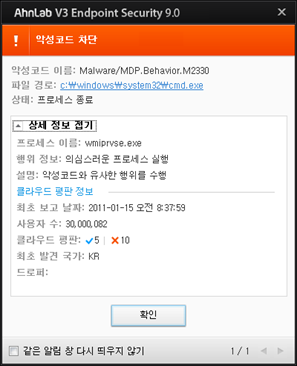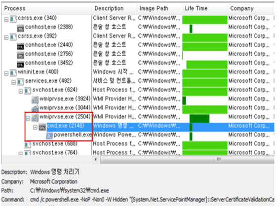 - Malware/MDP.Behavior.M2330 // wmiprvse.exe가 파워쉘 스크립트 실행하는 행위 차단