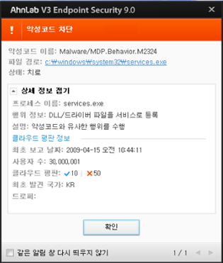 - Malware/MDP.Behavior.M2324 // 외부 스크립트 파일 다운로드 기능의 서비스 등록하는 행위 차단