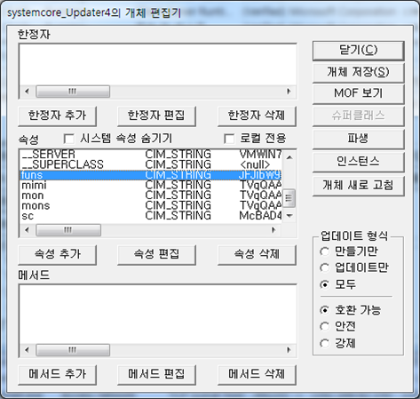 WMI 클래스(root\default: systemcore_Updater4) 속성 |