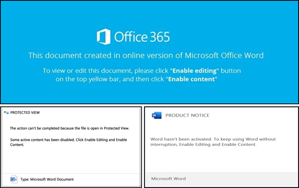 안랩 ASEC 분석팀은 국내 사용자를 대상으로 악성 VBA 매크로를 포함하고 있는 Word 파일이 유포되고 있음을 확인하였다. 해당 악성 VBA 매크로는 WMI를 통해 powershell을 실행하여 Emotet 악성코드를 다운로드하게 된다. Word 파일을 실행하게 되면 [그림 1]과 같이 VBA 매크로를 실행하도록 유도하는 문구의 그림이 존재한다. 유도 문구는 [그림 2]와 같이 다양한 형태로 유포되고 있다.