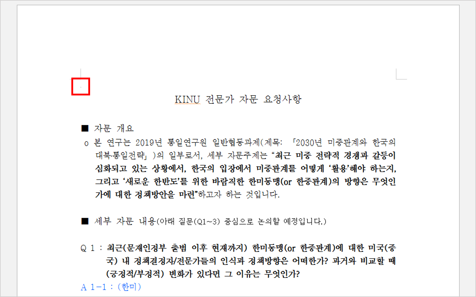 - 파일명: kinu 전문가 자문 요청사항(한미동맹과 한중관계).hwp (추정)