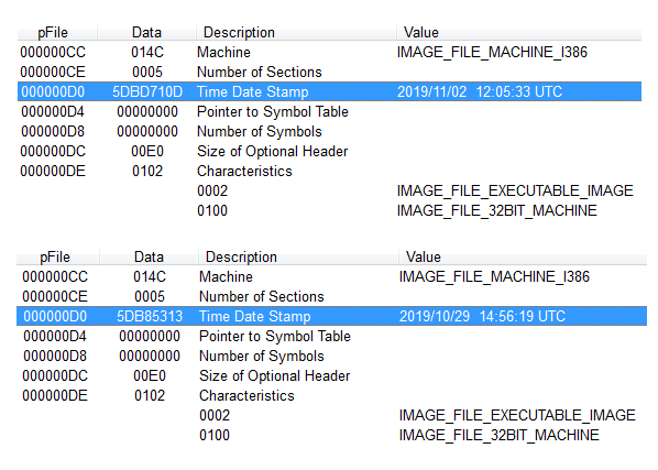 두 파일의 제작 시간은 국내 발견 파일이 10월 29일이며, 해외 수집 파일의 경우 11월 2일로 모두 최근에 제작/유포되는 것으로 추정된다.