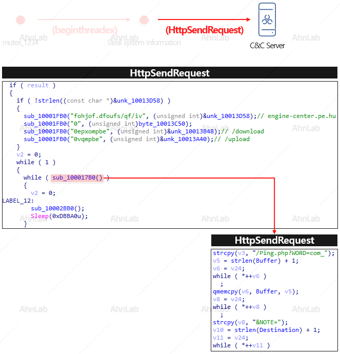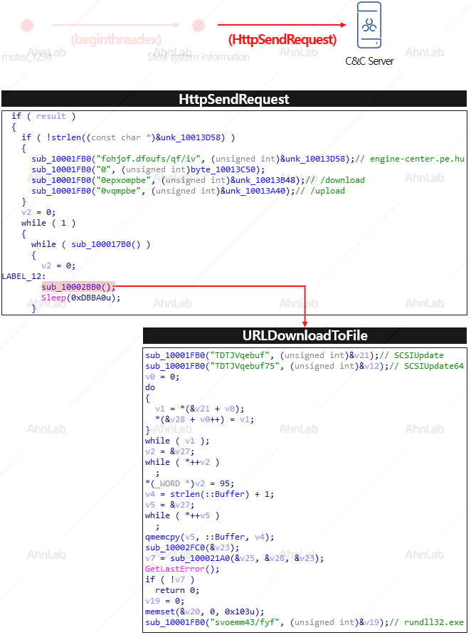 악성코드는 15분 간격으로 C&C서버에 시스템 정보를 전송하며 추가 악성코드 다운로드를 시도한다.