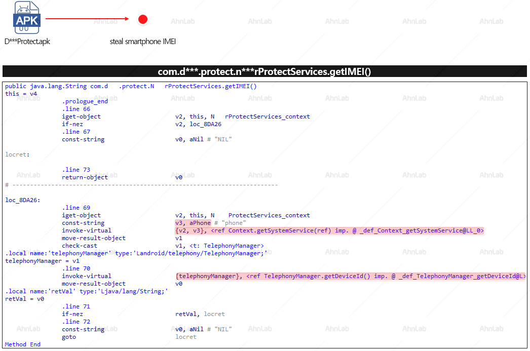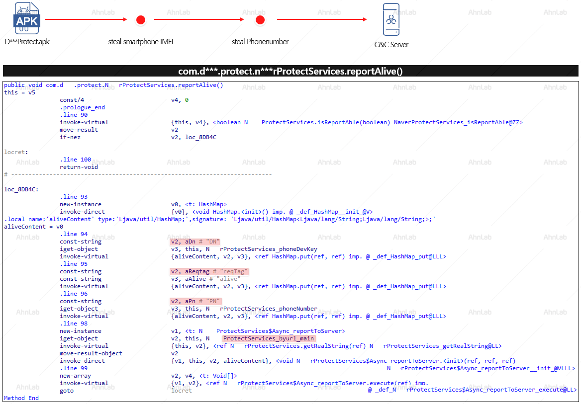 악성 앱이 설치되면 백그라운드 상태로 실행되어 동작하여 사용자는 감염 사실을 인지하기 어렵다. 백그라운드 상태에서 스마트폰 고유번호(IMEI)와 핸드폰 번호를 수집한다.