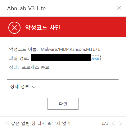 현재 V3에서는 DEATHRansom 랜섬웨어를 다음과 같은 진단명으로 진단하고 있다.