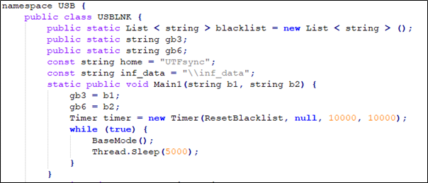 파워쉘 스크립트는 이동식 저장장치와 네트워크 드라이브 루트 디렉터리에 UTFsync\Inf_data 폴더를 생성한다. 이렇게 생성한 경로에 blue3.bin, blue6.bin 등의 DLL 파일과 DLL 파일을 실행하기 위한 바로가기(LNK) 파일을 생성한다.
