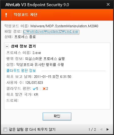- Malware/MDP.SystemManipulation.M2040 // Vidar 정보 유출형 악성코드