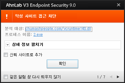현재 안랩은 해당 악성코드들에 대해서 파일진단 및 행위 진단으로 차단하고 있다.