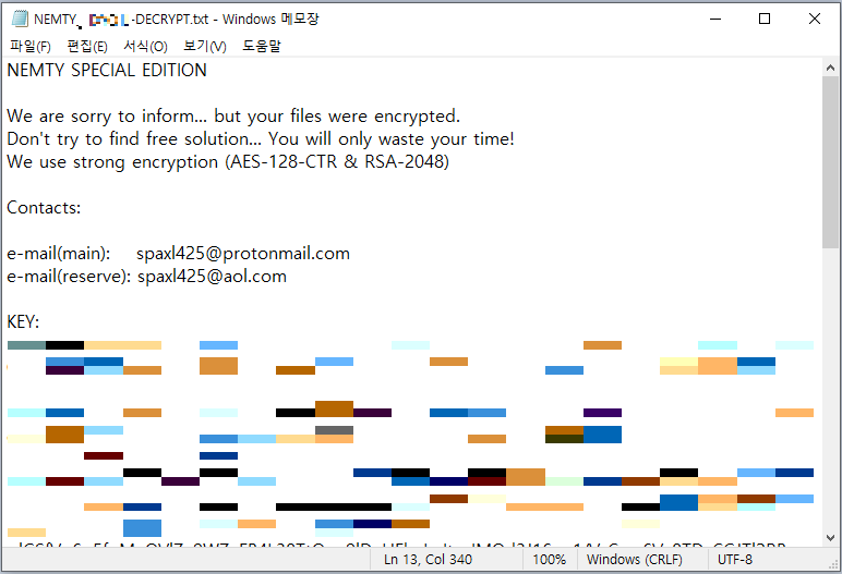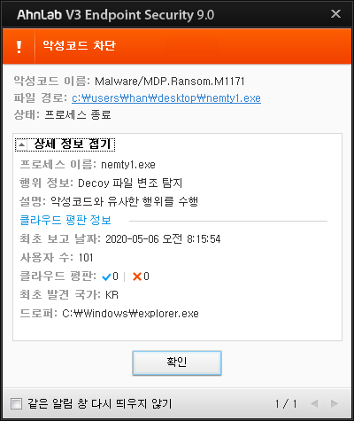 - Malware/MDP.Ransom.M1171 // Nemty 랜섬웨어