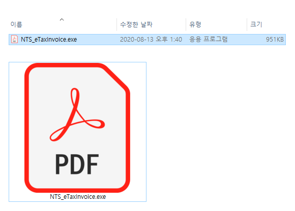 스크립트 파일에 의해 다운로드 된 "NTS_eTaxInvoice.img" 파일은 압축형식의 파일로 내부에는 아래의 그림과 같이 PDF 문서로 위장한 실행파일(*.exe)이 존재하며, 해당 파일은 정보유출 기능의 악성코드로 확인되었다.
