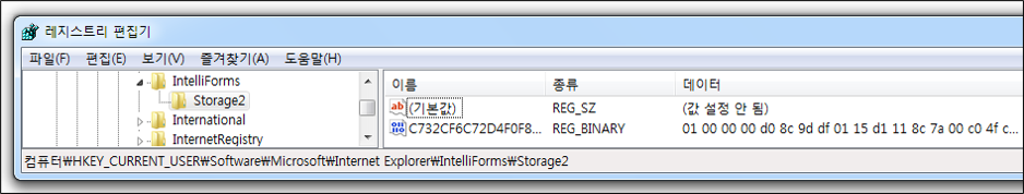 과거 버전의 Internet Explorer에서는 다음과 같은 레지스트리에 Auto Form 형태의 ID / PW를 저장하였다.