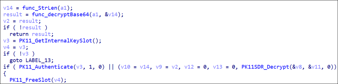 계정 정보의 경우 인코딩되어 저장되는데, base64 디코딩과 앞에서 로드한 nss3.dll (Network Security Service)의 함수들로 디코딩을 진행한다.