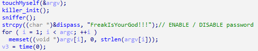 ENABLE / DISABLE 시에는 비밀번호가 필요한데, 이 비밀번호는 악성코드에 포함되어 있으며 받은 명령과 비교해서 일치할 시에 ENABLE / DISABLE이 동작한다.