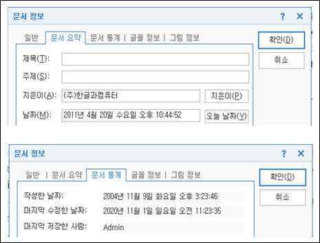 문서 정보는 아래와 같으며, 마지막으로 수정한 날짜가 2020년 11월 1일로 설정되어있다.